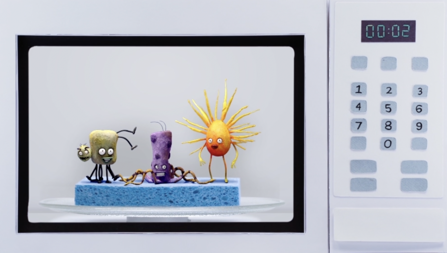 Microwave a wet sponge for 2 minutes to kill germs. Then let it cool.
